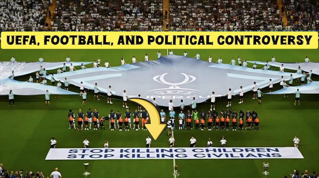 UEFA see fit to display at the beginning of a football match two huge banners saying stop killing children.